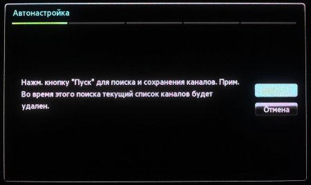 Как правило, режим настройки каналов доступен после нажатия кнопки MENU (Меню) на вашем пульте от телевизора, после чего необходимо выбрать опцию Настройка -> Настройка программ (каналов)-> Автонастройка. Телевизор сам очистит память и запишет присутствующие в телевизионной кабельной сети ТВ каналы.