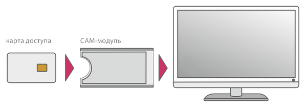 CAM-модуль (модуль условного доступа) — это устройство, предназначенное для декодирования защищённых телевизионных сигналов приёмным цифровым телевизионным оборудованием, у которого нет встроенной функции декодирования. CAM-модуль устанавливается в специальный слот телевизора или ресивера (Common Interface или CI-интерфейс) . В CAM-модуль устанавливается карта условного доступа телевизионного вещателя. - Примечание 3: